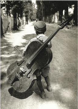 So könnte ich als kleiner Junge zum Bassunterricht gestiefelt sein. Aber nein, zum Kontrabass kam ich erst mit 10 Jahren, nach einem Umweg über das Blockflötenspiel. In der Clara-Schumann-Musikschule in Düsseldorf, die damals noch Jugendmusikschule hieß, gaben mir dann Herr Jürgen Kuß und Frau Anita Diermann den richtigen Musikunterricht, und diesmal den Baß.